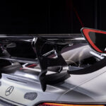 Il cuore della Mercedes AMG GT Track Series è il motore V8 biturbo da 4,0 litri della Mercedes AMG GT Black Series. Ad esempio, grazie a iniettori motorsport personalizzati e a un’applicazione specifica del motore, il propulsore dotato di un albero motore piatto eroga ora 580 kW (734 CV) e una coppia massima di 850 Nm. Il cambio sequenziale Hewland HLS a 6 rapporti da corsa con differenziale regolabile trasferisce la potenza all’asse posteriore. Come in tutti i modelli della famiglia GT, è stato installato sull’asse posteriore in configurazione transaxle e ha un collegamento resistente alla torsione e alla coppia al motore attraverso un tubo di torsione in fibra di carbonio.