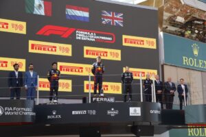 Spagna: doppietta e sorpasso Red Bull, terzo Russell. Leclerc out. Sainz 4°