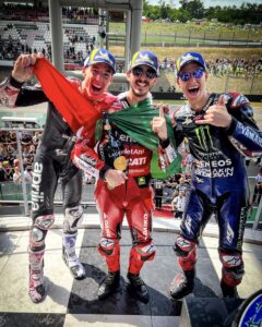 Dopo il KO francese di due settimane fa a Le Mans, Francesco Bagnaia (Ducati Lenovo Team) vince il Gran Premio d’Italia al Mugello davanti a Fabio Quartararo (Monster Energy Yamaha MotoGP) e Aleix Espargaro (Aprilia Racing), al quarto podio di fila con la RS-GP di Noale. Dal quarto posto, una serie di Ducati guidate da Johann Zarco (Prima Pramac Racing), seguito dal rookie Marco Bezzecchi (Mooney VR46 Racing Team) e dal compagno di squadra dell’italiano, Luca Marini, sesto in volata su un Brad Binder (Red Bull KTM Factory Racing) in rimonta dopo essere partito dalla sedicesima casella dello schieramento. In una giornata in cui il tricolore sventola grazie a Bagnaia, Ducati e Aprilia, Digiannantonio chiude 11°, Franco Morbidelli (Monster Energy Yamaha MotoGP) 17° davanti a Michele Pirro (Aruba.it Racing), Dovizioso (WithU Yamaha RNF MotoGP Team) 20°. Due posizioni più indietro Lorenzo Savadori (Aprilia Racing).