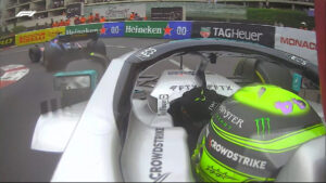 I primi sono poi passati alle intermedie, con Perez rientrato nel giro 17 e due giri dopo è stata la volta di Leclerc e Verstappen, mentre Sainz è passato direttamente alle hard nel giro 21, seguito a ruota dal compagno di squadra, in un doppio pitstop. Mossa copiata il giro successivo dalla Red Bull che con la sua doppia sosta ha fatto l’overcut sui rivali della Ferrari, cambiando l’ordine in pista: Perez, Sainz, Verstappen e un furioso Leclerc. Nel giro 27 Mick Schumacher è finito in testacoda alle Piscine, con la sua Haas che si è spaccata in due, causando un’altra bandiera rossa nel giro 30, per consentire di rimuovere i rottami e sistemare le barriere. La ripartenza nel giro 33, con la Ferrari sulle hard, mentre la Red Bull ha optato per le medie (un mistero, perché la stessa Pirelli prima del via aveva detto che in caso di asciutto sarebbero state preferibili soft e medie rispetto alle hard).