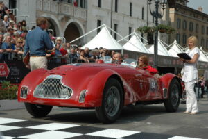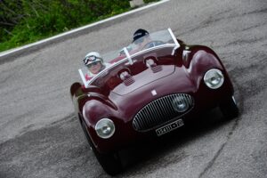 Ma anche la nostra Fiat 1100 Sport barchetta, carrozzata da Rocco Motto, del 1948, quello stesso anno gareggiò con l’equipaggio Pedretti-Alessio con il numero #395. Questa spider proprio l’anno scorso si è aggiudicata il trofeo “Spirit of Mille Miglia” al Concorso di eleganza Poltu Quatu Classic, riconoscimento ufficiale Mille Miglia riservato all’auto che meglio rappresenta l’essenza della Freccia Rossa.