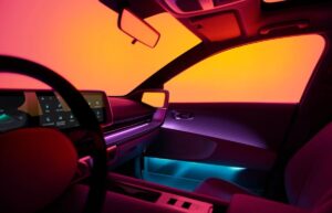 La Dual Color Ambient Lighting illumina gli interni di IONIQ 6, permettendo ai clienti di scegliere tra uno spettro di 64 colori e sei temi a doppio colore sviluppati da esperti per aiutare i conducenti e i passeggeri a sentirsi rilassati e a proprio agio. La modalità Speed Sync Lighting aggiunge emozione all’esperienza di guida modificando la luminosità dell’illuminazione interna in base alla velocità del veicolo. Le Interactive Pixel Lights a quattro punti posizionate sul volante consentono una facile comunicazione tra il veicolo e il conducente. L’eliminazione dei pulsanti dalle portiere anteriori ha permesso di ricavare più spazio per muoversi e per riporre gli oggetti. Gli inserti trasparenti sulla finitura della plancia, sulla tasca porta-oggetti delle portiere e sulla copertura inferiore della console accentuano ulteriormente il senso di spaziosità e unicità.