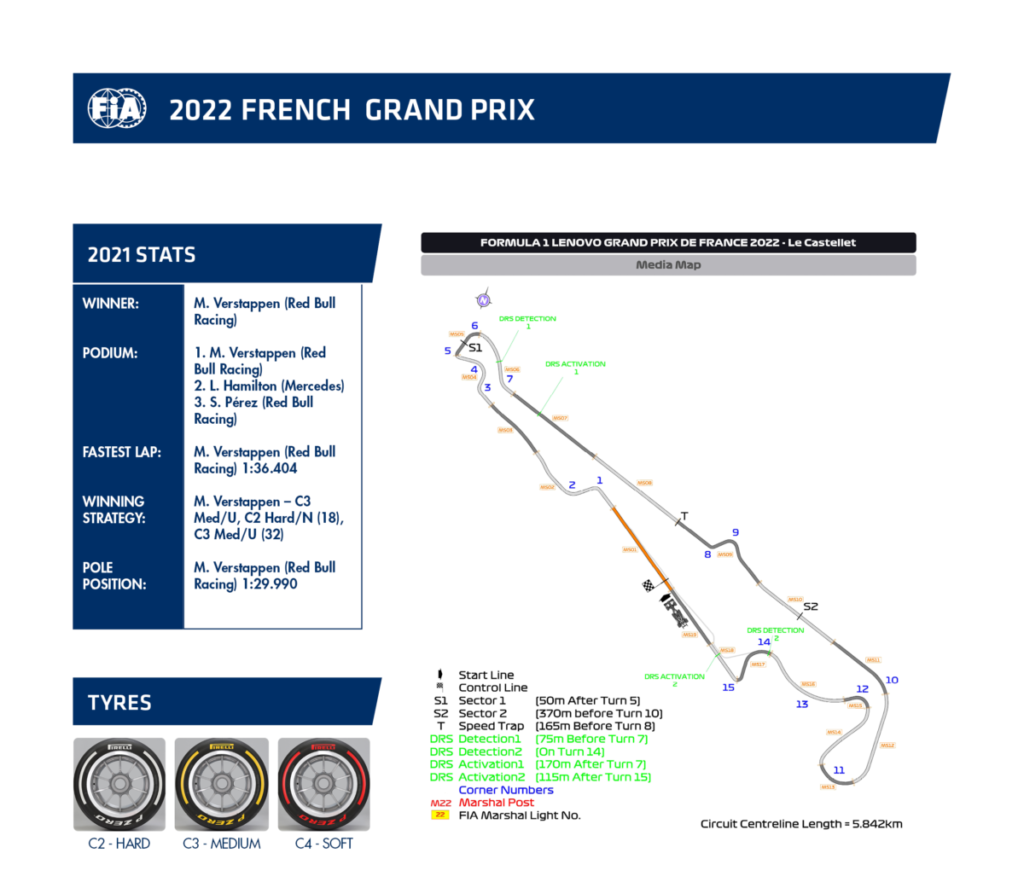 Programma. Le monoposto scenderanno in pista per le libere venerdì, alle 14 e alle 17 CET. Le qualifiche saranno sabato alle 16, precedute alle 13 dall’ultima sessione di libere. Il 62° GP di Francia prenderà il via alle 15 di domenica. Da percorrere 53 giri pari a 309,69 km.