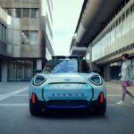 Ha anche le proporzioni che ci si aspetta dal marchio con una lunghezza esterna di 4,05 metri, una larghezza di 1,99 metri e un’altezza di 1,59 metri, il tutto con un design particolarmente contemporaneo. La classica divisione in tre parti della carrozzeria, della texture dei finestrini e del tetto è stata reinterpretata. Il passaggio a filo tra la carrozzeria e le superfici vetrate sfrutta al meglio le proprietà aerodinamiche. Il design pulito e ridotto della MINI Concept Aceman rinuncia completamente alle rifiniture cromate intorno ai bordi che erano comuni nelle precedenti generazioni di modelli. Le ampie cornici sul bordo inferiore della carrozzeria, i passaruota marcatamente sagomati, le ruote di grandi dimensioni, l’appariscente portapacchi sul tetto e i pannelli di protezione anteriori e posteriori, concepiti come protezione anti-incastro, sottolineano le solide e versatili caratteristiche di un modello crossover che punta a divertire nella guida urbana.