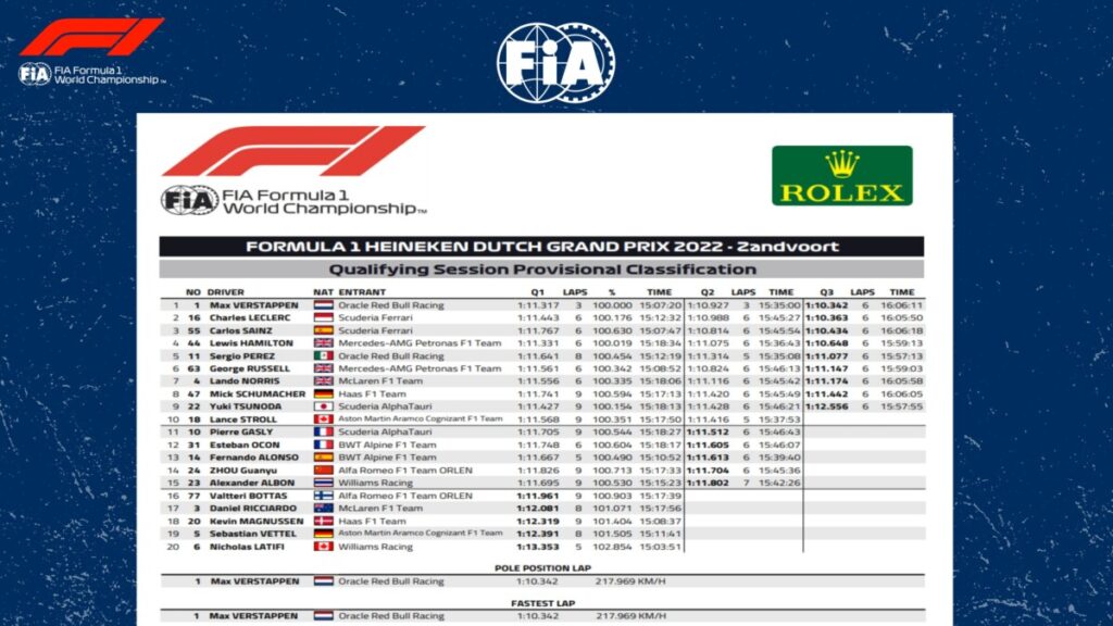 Per 21 millesimi su Charles Leclerc, Max Verstappen fa sua la pole nel GP d’Olanda 2022 a Zandvoort, la seconda consecutiva in casa e la 17° in carriera. Il campione della Red Bull (alla 38° prima fila in carriera, la nona in questa stagione) ha fatto un tempo di 1.10.342s prima che il compagno di squadra Sergio Perez, quinto, andasse in testacoda alla curva 13, causando le bandiere gialle e impedendo a chiunque altro di insidiare la pole dell’olandese. Cosa che sui social ha subito fatto gridare al complotto…