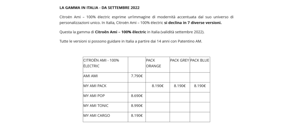 My Ami Tonic sarà commercializzato in Francia, Italia, Portogallo, Belgio, Gran Bretagna, Grecia, Marocco, Turchia. Con l’arrivo della versione My Ami Tonic, le versioni My Ami Khaki e My Ami Vibe non sono più ordinabili. La versione My Ami Tonic è ordinabile in Italia, al prezzo di listino di 8.990 euro.
