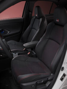 L’abitacolo è caratterizzato dai sedili GR SPORT in Ultrasuede™ traforato con fianchetti in pelle e cuciture rosse; le stesse sono presenti anche sul volante e sulla leva del cambio. Il logo GR è ben visibile sui poggiatesta anteriori, sul pulsante di avviamento, sul display multi-informazioni e sul volante; nelle portiere e nel cruscotto sono inoltre presenti inserti con finitura “gun metal grey” specifici per l’allestimento GR SPORT.