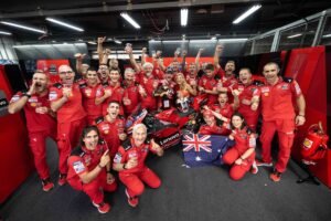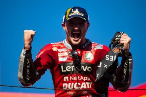 Giornata sfortunata per il compagno di squadra Pecco Bagnaia che, dopo essersi qualificato dodicesimo ieri sul bagnato, ha dovuto fare una gara di rimonta quest’oggi. A pochi giri dal termine Pecco era riuscito ad avvicinarsi al suo diretto rivale in campionato Quartararo, che era ottavo, ma nel tentativo di sorpassarlo all’ultimo giro il pilota italiano ha commesso un errore ed è caduto. Bagnaia adesso ha un distacco di 18 lunghezze sul pilota francese, mentre Miller resta quinto con 159 punti. Oltre al titolo piloti, resta ancora aperto anche il Campionato Squadre, che vede al momento il Ducati Lenovo Team al comando della classifica generale con un vantaggio di 53 punti.