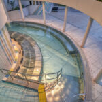 I sedili dell’allestimento GT sono improntati a una sportività che si abbina a quel confort con cui viene anticipato il benessere all’arrivo in Leukerbad. Il traguardo è quai surreale: a 700 metri di dislivello dalla valle, ci si trova immersi in un anfiteatro naturale che abbraccia letteralmente il centro del villaggio, localizzato a 1 411 metri di altitudine. Il silenzio che avvolge la tranquilla vita di questo borgo, si trasforma subito in curiosità nell’osservare i turisti che si dirigono verso le terme, avvolti in un candido accappatoio bianco.