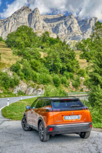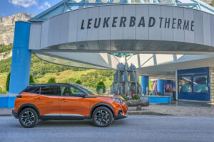 I 17 chilometri che separano la valle del Rodano da Leukerbad sono un invito al nuovo piacere di guida elettrico, con la complicità di una coppia motrice ancora più robusta selezionando la modalità di guida SPORT, con il recupero di preziosa energia al solo rilascio dell’acceleratore aumentato selezionando la posizione B (brake) del cambio. Le perfette condizioni dell’asfalto elvetico invogliano a entrare in totale sintonia con PEUGEOT e-2008 e la sua maneggevolezza, amplificata dal compatto volante abilmente sagomato e ideale per esaltare le sensazioni.