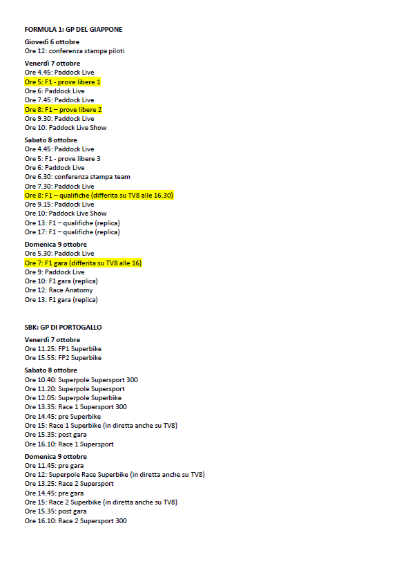 Un altro fine settimana all’insegna dei motori su Sky e in streaming su NOW. Fino a domenica 9 ottobre, diretta esclusiva con il GP del Giappone di F1, live da Suzuka a tre anni dall’ultima edizione. Semaforo verde domenica alle 7 live su Sky Sport F1, Sky Sport Uno, Sky Sport 4K e in differita su TV8 per la gara che può incoronare Max Verstappen campione del mondo per la seconda volta. Nuovo appuntamento invece nella penisola iberica per la Superbike con il round di Portogallo che andrà in scena tra le montagne russe del circuito di Portimao (diretta Sky Sport MotoGP, in streaming su NOW e in diretta su TV8). Nel weekend anche Porsche Carrera Cup Italia a Monza (diretta su Sky Sport Action) e Ferrari Challenge al Mugello.