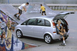 Sebbene fosse molto compatta, Opel Meriva trasmetteva un’immediata impressione di spaziosità. Ciò era dovuto ai ridotti sbalzi della carrozzeria abbinati ad un passo di 2,63 metri, ai sottili montanti incurvati del tetto ed alla linea del tetto stesso che scendeva leggermente dopo il secondo montante. Ancora prima della sua introduzione sul mercato, la nuova monovolume Opel ricevette molti apprezzamenti per il suo stile esemplare: nel novembre 2002 l’istituto britannico degli ingegneri automobilistici le attribuì, ad esempio, il premio MPV Design Award per la “freschezza della sua linea esterna”. La prima generazione di Opel Meriva rimase in produzione fino al 2010 quando fu sostituita dalla seconda generazione con le caratteristiche porte laterali con apertura a libretto il cui posto fu presso dall’attuale Opel Crossland.
