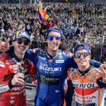 Alex Rins porta a casa una splendida vittoria nel GP di Australia, una delle più belle nella storia della MotoGP. Lo spagnolo regala il successo al Team Suzuki Ecstar che a fine anno lascerà il Campionato mentre il leader della classifica Fabio Quartararo (Monster Energy Yamaha MotoGP) a due gare dalla fine della stagione cede la leadership iridata a Francesco Bagnaia (Ducati Lenovo Team) che all’ultimo giro viene passato da Rins e Marc Marquez (Repsol Honda Team) che, con il secondo posto di oggi a Phillip Island, centra il 100° podio nella classe regina.