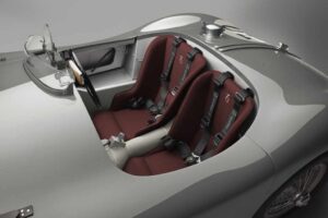 Ogni “70-Edition” presenta uno specifico alloggiamento per la chiave e un’esclusiva placca sul cruscotto realizzati dalla gioielleria Deakin & Francis. Fondata nel 1786, la Deakin & Francis vanta oltre 230 anni di attività nel settore e rappresenta la più antica gioielleria manufatturiera d’Inghilterra. Per queste limited edition hanno realizzato la placca del cruscotto utilizzando il serbatoio del carburante di una C-type del 1953.