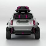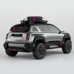 Un’avventura elettrica fuori dai sentieri battuti. Questa è la promessa che, fin dal primo sguardo, fa la showcar 4EVER Trophy con quella sua aria da crossover. La motorizzazione elettrica rimanda alla futura auto di serie. La parte inferiore di 4EVER Trophy, verniciata in tinta Gun Metal Silver, è fatta apposta per i grandi spazi. Questa showcar, vero e proprio invito all’esplorazione e alla scoperta, dichiara senza mezzi termini di avere il carattere di chi supera i limiti. Gioca la carta della consapevole esuberanza, indossando un abito color Argento Alluminio, con tocchi di magenta sulle cinghie del portapacchi, le molle degli ammortizzatori e gli emblemi dei cerchi.