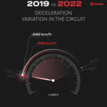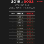 Al Sepang International Circuit le MotoGP fanno ricorso ai freni 11 volte al giro per un totale di 38 secondi, equivalenti al 32 per cento dell’intero GP. I 38 secondi sono inferiori solo ai 40 secondi di Losail che però richiede l’uso dei freni 13 volte al giro. A Sepang sono presenti 4 staccate da almeno 4 secondi e un paio di queste da oltre 5 secondi: all’ultima curva servono 5,7 secondi per perdere 255 km/h in appena 258 metri. Le decelerazioni sono di ogni tipo ma in 4 punti non scendono sotto gli 1,5 g, inclusa la curva 9 per la quale i piloti devono esercitare un carico sulla leva del freno di 5 kg. Sommando tutte le forze esercitate da un pilota sulla leva del freno dalla partenza alla bandiera a scacchi si superano i 7,7 quintali, un valore non esagerato specie se rapportato ai 12 quintali del GP San Marino.