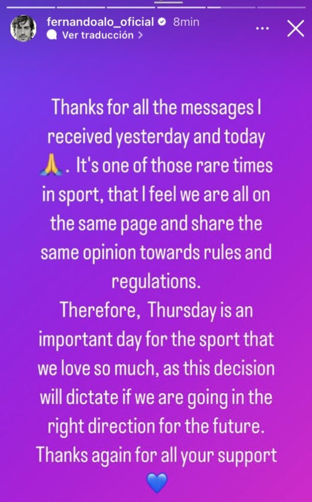 La vera controversia però riguarda la rimonta di Alonso fino alla 7° posizione dopo il decollo nell’incidente e la decisione della FIA di penalizzarlo parecchio tempo dopo la bandiera a scacchi dopo una protesta fatta dalla Haas. E’ da inizio stagione che il team americano lamenta di essere penalizzato per aver causato danni in incidenti, con Gunther Steiner che insiste che la sua protesta non è rivolta all’Alpine ma alla FIA: “Per me si tratta di coerenza nelle decisioni. La FIA è il legislatore e devono essere coerenti“. Il punto cruciale della protesta Haas è che Alonso ha tagliato il traguardo senza uno specchietto, chiara violazione delle regole. Ma la F1 e il mondo dello sport sono rimasti attoniti dalla decisione della FIA: “Abbiamo appena visto che anche la macchina di Alonso che abbiamo qui al Rafa Nadal Museum manca di uno specchietto“, ha scritto su Twitter il suddetto museo. “Speriamo che non venga sanzionato dalla FIA“. L’ex-pilota Indycar Oriol Servia ha detto: “L’ipocrisia della FIA nel penalizzare Fernando sei ore dopo la gara sta raggiungendo livelli inaccettabili“. Persino il report post-gara firmato da Jo Bauer certifica che la macchina di Fernando ha passato lo scrutineering e ha avuto semaforo verde. La FIA prenderà in esame il ricorso di Alpine giovedì, prima del GP del Messico. “E’ una di quelle rare volte nello sport in cui sento che siamo tutti sulla stessa barca e condividiamo la stessa opinione su regole e regolamenti“, ha scritto Alonso su Instagram. “Perciò giovedì sarà un giorno importante per lo sport che amiamo così tanto, dato che la decisione sancirà se stiamo andando nella giusta direzione per il futuro“.
