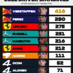 Da dimenticare la gara – e il weekend – della Ferrari, con Carlos Sainz e Charles Leclerc praticamente inesistenti, che hanno chiuso in 4° e 5° posizione ma a un minuto da Verstappen e a oltre 40 secondi dalla Mercedes. Un calo che mette a rischio il secondo posto nella classifica Costruttori, importante non solo per lustro ma per i soldi che porta. Settima la McLaren di Daniel Ricciardo, che abbiamo finalmente rivisto in forma e brillante, anche grazie alle soft, e che è riuscito a mantenere la posizione nonostante la penalità di 10 secondi per un contatto con Yuki Tsunoda. Ottavo Esteban Ocon, mentre è andata male al compagno di squadra Fernando Alonso, che non è riuscito a trattenere la rabbia e la delusione. A chiudere la zona punti la McLaren di Lando Norris e l’Alfa Romeo di Valtteri Bottas.