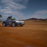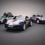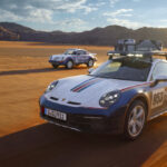 La base del pacchetto opzionale Rallye Design di Porsche Exclusive Manufaktur è la finitura bicolore Bianco/Blu Genziana metallizzato. Questa combinazione di verniciatura e wrapping bicolore su un modello standard è una novità assoluta per Porsche. Il cliente può scegliere un numero di gara individuale compreso tra 1 e 999 da apporre sulla fiancata della vettura. Oltre alle strisce decorative in rosso e oro, la 911 Dakar con pacchetto Rallye Design – che ripropone l’estetica della vettura vincitrice della Parigi-Dakar del 1984 – presenta anche il logo “Roughroads” sulle portiere. Questo termine è un marchio registrato e rimanda al concetto della 911 Dakar e alla sua idoneità alla guida in fuoristrada. Come optional è disponibile il pacchetto Rallye Sport con barra antiribaltamento, cinture di sicurezza a sei punti ed estintore. Chi acquista la 911 Dakar può ordinare in esclusiva i cronografi Porsche Design Chronograph 1 – 911 Dakar o Chronograph 1 – 911 Dakar Rallye Design Edition a corredo della propria vettura. La particolarità di questi segna-tempo è la cassa, per la prima volta realizzata in carburo di titanio, leggero e particolarmente resistente ai graffi. La nuova Porsche 911 Dakar può essere ordinata da subito al prezzo di 230.990 euro IVA inclusa. Il pacchetto Rallye Design costa 26.718 euro.