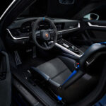 Nell’abitacolo, la 911 Dakar esprime le sue ambizioni sportive attraverso i sedili integrali di serie e l’assenza di sedili posteriori. I vetri leggeri e la batteria a peso ridotto abbassano ulteriormente il peso della Porsche 911 Dakar a soli 1.605 kg, appena 10 kg in più rispetto alla 911 Carrera 4 GTS con cambio PDK. Una caratteristica peculiare degli interni della Dakar sono i rivestimenti in Race-Tex di serie con impunture decorative in tonalità Shade Green, che è disponibile in esclusiva per la 911 Dakar anche come rivestimento metallizzato per la carrozzeria.