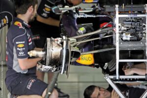 Le 6 specifiche di ventilazione per l’assale anteriore sono tornate ad essere appena un paio quest’anno, a seguito del nuovo, rivoluzionario cambio dei regolamenti: il peso minimo è passato da 752 kg a 798 kg, l’aerodinamica è mutata e sono state adottate le ruote da 18 pollici, invece di quelle da 13 pollici. Il nuovo regolamento tecnico è andato infatti anche a incidete sugli impianti frenanti, sia aumentando il diametro dei dischi, da 278 mm a 328 mm per l’anteriore, e da 266 mm a 280 mm per il posteriore, che accrescendo il diametro dei dischi posteriori, portato a 32 mm, dai 28 mm dell’anno scorso.