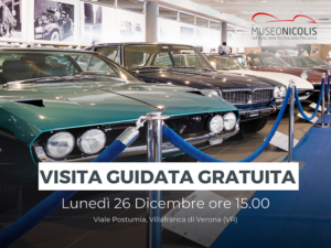 Tra le più suggestive esposizioni private del mondo, il Museo Nicolis narra la storia dell’auto, della tecnologia e del design del XX secolo. Il percorso espositivo presenta innumerevoli opere dell’ingegno umano, esposte secondo un itinerario intrigante ed esclusivo che evidenzia storie e percorsi inediti nella ricerca e nelle avanguardie tecnologiche del 900. Il tour guidato del 26 dicembre è su prenotazione e prevede un’esperienza esclusiva dedicata a un numero limitato di partecipanti. E’ possibile prenotare online, via mail info@museonicolis.com o telefono +39 045 6303289 (prezzi: adulti € 12,00, bambini fino ai 10 anni OMAGGIO”.
