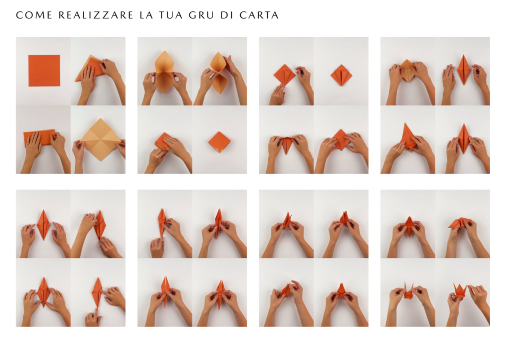 Mazda è molto legata alle tradizioni e alla cultura giapponesi, per questo oggi ci porta a fare un viaggio diverso, non in auto, ma alla scoperta della gru, simbolo di longevità e buona sorte e forse per questo uno degli origami più conosciuti e diffusi. Si ritiene altresì che il potere della gru di carta (o Orizuru) vada ben oltre la semplice magia artistica del trasformare un banale foglio di carta nell’uccello di origami più iconico al mondo. Secondo una leggenda della tradizione Senbazuru, a chi è in grado di piegare mille gru d’origami è concesso realizzare un desiderio. In tutto il Giappone la storia della dodicenne Sadako Sasaki incarna forse al meglio la leggenda di Senbazuru. Avvelenata dalle radiazioni della bomba atomica di Hiroshima del 1945, Sadako iniziò a piegare mille gru di carta nella speranza di riuscire a guarire. La sua storia si diffuse ben presto nell’intero Paese e le gru di carta continuano oggi a essere un simbolo di guarigione, messaggi di pace e speranza in tutto il Giappone. A Hiroshima è stato costruito anche un edificio con questo nome, la torre di Orizuru.