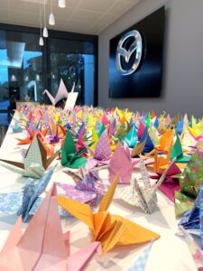 Mazda è molto legata alle tradizioni e alla cultura giapponesi, per questo oggi ci porta a fare un viaggio diverso, non in auto, ma alla scoperta della gru, simbolo di longevità e buona sorte e forse per questo uno degli origami più conosciuti e diffusi. Si ritiene altresì che il potere della gru di carta (o Orizuru) vada ben oltre la semplice magia artistica del trasformare un banale foglio di carta nell’uccello di origami più iconico al mondo. Secondo una leggenda della tradizione Senbazuru, a chi è in grado di piegare mille gru d’origami è concesso realizzare un desiderio. In tutto il Giappone la storia della dodicenne Sadako Sasaki incarna forse al meglio la leggenda di Senbazuru. Avvelenata dalle radiazioni della bomba atomica di Hiroshima del 1945, Sadako iniziò a piegare mille gru di carta nella speranza di riuscire a guarire. La sua storia si diffuse ben presto nell’intero Paese e le gru di carta continuano oggi a essere un simbolo di guarigione, messaggi di pace e speranza in tutto il Giappone. A Hiroshima è stato costruito anche un edificio con questo nome, la torre di Orizuru.