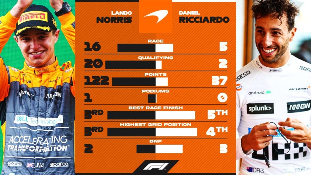 Baci abbracci, facce sorridenti sui social. I due vanno d’amore e d’accordo manco fossero marito e moglie. Cambiano casco ogni volta che si scende in pista ma alla fine? Il libro cuore interessa agli sponsor. Ma ai tifosi? Sono ca@@ate che non interessano se poi la classifica è quella che è. Cioè deludente. Norris ha fatto quel che ha potuto con la monoposto che gli hanno consegnato. Ricciardo manco quello e si è avviato, a peso d’oro, al pre-pensionamento. A un certo punto ha smesso di ridere, avvolto da dubbi su che ci facesse li, ma è stato per poco, non sia mai. I tifosi della McLaren invece non hanno mai sorriso.