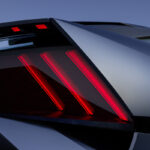 Il posteriore, che riflette in modo identitario la nuova firma del frontale, adotta un trattamento high-tech, con i tre artigli che sembrano entrare nella vettura all’infinito, grazie ai due strati di vetro. L’effetto è davvero magico. La coda della PEUGEOT INCEPTION CONCEPT sottolinea la sottile scolpitura dei parafanghi, segnati da una linea semplice che si allarga in una curva generosa e seducente.