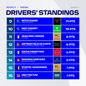 Jean-Éric Vergne: “È stata una gara pulita; Ho guadagnato alcune posizioni e aperto il mio “portafogli” per collezionare i punti della stagione. La strategia era buona, ma ci mancava solo un po’ di ritmo in gara, e soprattutto in qualifica, che è il vero problema qui. Dobbiamo cercare di capire i problemi che abbiamo in fase di qualifica in modo da poter iniziare più in alto nella griglia, perché partendo da dove siamo, non abbiamo alcuna possibilità. Quindi, tutta l’attenzione è rivolta alle qualifiche di domani per cercare di migliorare”.