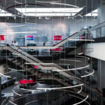 All’interno dell’installazione c’è infatti una vera e propria cascata di lettere, a comporre i nomi dei modelli più iconici di sempre – dalla Disco Volante alla 33 Stradale, dalla 8C 2900B Speciale le Mans al “Duetto” – oltre a stilemi, come l’inconfondibile V della calandra, realizzati su sagome di metallo verniciate in Rosso Alfa, ed elementi luminosi curvi di lunghezze diverse che si susseguono dal soffitto vetrato del Museo sino al basamento. Un sofisticato impianto tecnologico governa questo spettacolo di luci, che può essere modulato in diverspi scenari a seconda dell’effetto desiderato: dal battito del cuore che si muove all’interno del cilindro alla scia, con lampi che si rincorrono nel perimetro esterno. Nel weekend di MuseoCity, i visitatori del Museo Alfa Romeo saranno invitati a cambiare prospettiva, e scoprire la storia di Alfa Romeo proprio attraverso il DNA, lasciandosi guidare dagli elementi iconici presenti nell’installazione.