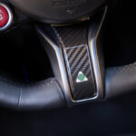 Dinamica di guida best in class, risultato della sorprendente leggerezza, dovuta all’utilizzo di materiali ultraleggeri come l’alluminio per il motore e la fibra di carbonio per l’albero di trasmissione, cofano, spoiler e minigonne. Su Giulia, rimane l’aerodinamica attiva con lo splitter anteriore in carbonio: quando attivato controlla la qualità di flusso d’aria che passa sotto il veicolo, aumentando stabilità e prestazioni. Infine, il sistema di scarico Akrapovich, che conferisce allo scarico un sound inconfondibile.