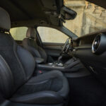 La stessa caratterizzazione sportiva si ritrova nell’ambiente interno dove prevale l’esclusivo binomio pelle nera ed alcantara, impreziosito dalle nuove ed esclusive cuciture dorate a vista e dall’innovativa finitura in 3D in vero carbonio per il cruscotto, il tunnel centrale e il pannello delle porte. Sulla plancia domina l’impuntura del celebrativo numero “100” accostato al Quadrifoglio sempre nel caratterizzante color oro. Il volante è rivestito in pelle ed Alcantara con cuciture nere e inserti in fibra di carbonio.