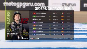 Al via il più veloce a fiondarsi verso la prima curva è stato Miller, seguito da Binder e da Aleix Espargaro (Aprilia Racing), scattato dalla pole. Ma alla seconda curva un contatto fra Franco Morbidelli (Monster Energy Yamaha MotoGP) e Alex Marquez (Gresini Racing MotoGP) ha messo entrambi a terra. Johann Zarco (Prima Pramac Racing) è stato colpito ma è rimasto in sella, mentre il leader iridato, Marco Bezzecchi (Mooney VR46 Racing Team) non è stato altrettanto fortunato ed è caduto. I commissari sono intervenuti sulle moto con l’estintore: bandiera rossa, tutto da rifare. Con il secondo posto Bagnaia si porta a tre punti dal leader iridato Bezzecchi, nono nel sabato spagnolo. Al terzo posto sale Maverick Vinales (Aprila Racing), settimo nella Tissot Sprint. Domani la gara alle ore 15.