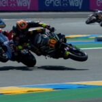 Marco Bezzecchi e il Mooney VR46 Racing Team firmano la seconda vittoria della stagione al GP di Francia, 1000esima gara dell’era MotoGP. In sella alla Ducati DesmosediciGP, taglia il traguardo in solitaria e ora è al secondo posto nella generale (93 punti ndr) ad un solo punto dalla P1 (Bagnaia ndr). Costretto al ritiro dopo una caduta, Luca Marini quando era in lotta per il podio.cScattato dalla settima casella della griglia, Marco prende subito il ritmo dei più veloci e chiude il primo giro in P6. Capace di risalire la classifica, è primo a 11 giri dalla bandiera a scacchi, posizione che riesce a difendere fino al traguardo. Grande prova di forza, proprio alla vigilia del GP di casa (Mugello, in tre settimane ndr) e primato confermato anche tra i Team con 147 punti.cP4 ieri nella Sprint e prima fila per Luca, costretto al ritiro dopo una caduta, nel corso del quinto giro, quando era nella scia di Marco per le posizioni del podio. Un incidente senza conseguenze e rientro ai box anzitempo.