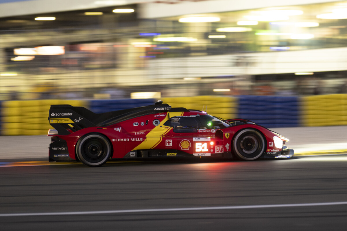 La prima sessione in notturna a Le Mans ha visto le Ferrari 499P concludere in seconda e in ottava posizione le Prove libere 2 disputate mercoledì sera. La Hypercar #51, con James Calado al volante, ha registrato un miglior tempo pari a 3’29’’225, valso al britannico, che condivide la vettura della Casa di Maranello con Alessandro Pier Guidi e Antonio Giovinazzi, la seconda piazza dopo le due ore cronometrate terminate a mezzanotte. Con un distacco di 0’’881 rispetto ai compagni di squadra del team Ferrari – AF Corse, Nicklas Nielsen ha firmato un tempo di 3’30’’086 valso l’ottavo posto in classifica alla 499P #50 dell’equipaggio completato da Antonio Fuoco e Miguel Molina. prima alla bandiera a scacchi è risultata la Porsche numero 6.
