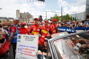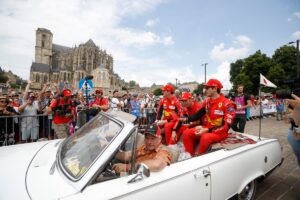 L’edizione del Centenario della 24 Ore di Le Mans come da tradizione è stata preceduta della parata di piloti e team nel centro città. Un appuntamento che si rinnova ogni anno alla vigilia della corsa endurance più famosa e antica al mondo, che partirà sabato 10 alle ore 16. I piloti delle 499P, che scatteranno dalla prima fila in griglia, sono stati applauditi dei tifosi e gli appassionati di motorsport alla ricerca di una foto ricordo. La squadra Ferrari – AF Corse era rappresentata da entrambi gli equipaggi: Antonio Fuoco, Miguel Molina e Nicklas Nielsen che partiranno dalla pole position con la Hypercar numero 50, Alessandro Pier Guidi, James Calado e Antonio Giovinazzi, i quali condividono la vettura numero 51.
