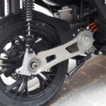 Questo sistema è molto più favorevole dal punto di vista della distribuzione dei pesi, della facilità e del rendimento di guida rispetto a quello che prevede di alloggiare il motore all’interno della ruota. E anche il comfort di marcia ne risulta favorito, perché questo schema rende più facile il lavoro degli ammortizzatori posteriori.