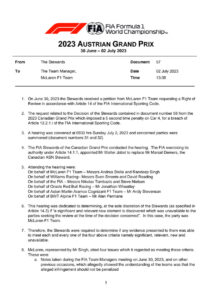 Dopo il ricorso presentato dalla McLaren, FIA e i commissari hanno deciso: resta la penalità di 5 secondi data a Lando Norris nel GP del Canada. Di seguito il comunicato del team: