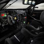 Gli interni sono stati mantenuti il più possibile essenziali e simili a quelli della 488 GT3 Evo 2020, con l’eccezione di pannelli porta e finizioni della plancia lato passeggero. I sedili specifici, sellati in Alcantara® con logo elettrosaldato, donano all’abitacolo un look elegante, perfettamente integrato con quello degli esterni. La visibilità posteriore è garantita da un sistema di videocamere che ha apportato grandi vantaggi dal punto di vista aerodinamico grazie alla rimozione dei classici retrovisori, oltre a preservare le linee della fiancata.