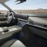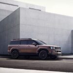 Il frontale dà un senso di imponenza grazie al cofano alto, alle luci che disegnano il profilo di una H e ai passaruota dalle linee nette. Il motivo “H”, che si ritrova anche nella parte inferiore del paraurti anteriore, trae ispirazione dal logo Hyundai per un look ancor più distintivo. L’incremento dell’interasse contribuisce alla sensazione di grandezza e robustezza, insieme al profilo del tetto deciso, ai volumi scolpiti intorno alle ruote, allo sbalzo anteriore ridotto e alle ruote con cerchi da 21”.