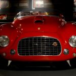 Allo stand dei Musei Ferrari si possono ammirare due vetture iconiche. Ferrari 166 MM, specificamente progettata per le corse di lunga durata, prende il nome dalla Mille Miglia, celeberrima competizione di gran fondo in cui le auto di Maranello hanno spesso ottenuto leggendari trionfi. Il 26 giugno 1949, il pilota milanese trapiantato in America Luigi Chinetti si aggiudica la 24 Ore di Le Mans a bordo di una 166 MM Barchetta Touring di proprietà dell’inglese Lord Selsdon con una velocità media di 132,946 chilometri orari, contro una nutrita schiera di professionisti inglesi e francesi che gareggiavano con vetture di cilindrata doppia rispetto ai motori della Ferrari, dimostrando profonda preparazione e forte senso tattico. La leggenda narra che Chinetti guidò la vettura per oltre 23 ore, cedendo il volante a Lord Selsdon per appena 30 minuti, sebbene nel “Libro delle corse” di quell’anno viene riportato che “[Chinetti] Solo per poche ore lasciò la guida al compagno Lord Selsdon”. (Anno 1948, Motore V12 a 60°, Cilindrata 1995,02 cc, Potenza massima 140 CV a 6000 giri/min, Cambio a 5 rapporti + RM, Velocità massima 220 km/h).