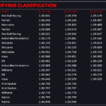 Fuori in Q2 la RB con Yuki Tsunoda 11°, seguito da Lance Stroll e dalla Williams di Alex Albon. Un decimo e mezzo più lento del compagno di squadra Daniel Ricciardo, 14°, con Kevin Magnussen che non è riuscito a tenere il passo di Hulkenberg, chiudendo 15° sulla seconda Haas, dopo che gli è anche stato cancellato un tempo per aver superato i track limits. Kick Sauber subito fuori in Q1, con Valtteri Bottas e Zhou Guanyu 16° e 17°, davanti a Logan Sargeant. Prima qualifica dell’anno disastrosa per Alpine, che chiude la griglia con Esteban Ocon e Pierre Gasly.