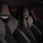 La stessa ispirazione di pura sportività si ritrova all’interno della vettura dove spicca la cura italiana di ogni dettaglio, l’impiego dei materiali più pregiati e la posizione di tutti i comandi che sono a portata del guidatore, come dimostra il volante compatto per adattarsi a tutti gli stili di guida, e soprattutto il quadro strumenti caratterizzato dallo storico design “a cannocchiale”, che crea quella connessione visiva diretta e che persuade ad avvolgere il volante con le mani, avviare il motore, e godere appieno di un’esperienza di guida unica. Al centro del cluster spicca uno schermo TFT da 10,25” totalmente digitale da cui accedere alle informazioni sulla vettura e ai parametri relativi alle tecnologie di guida. Al centro della plancia e orientato verso il guidatore, si trova un touchscreen da 10,25”, sistema sviluppato secondo la logica dei widget, ovvero componenti grafici studiati per interagire intuitivamente con tutte le funzionalità e personalizzabili con un semplice drag and drop. Ogni utente può creare così la propria homepage, in cui ogni funzionalità della vettura è un’applicazione. Ad impreziosire ulteriormente l’ambiente interno, le bocchette di climatizzazione a forma di quadrifoglio, simbolo per eccellenza della sportività Alfa Romeo. Infine, a catturare lo sguardo ed accogliere il guidatore, troviamo i sedili sportivi firmati Sabelt caratterizzati da un avvolgente schienale che coniuga elevata resistenza meccanica, perfetta ergonomia e leggerezza strutturale.