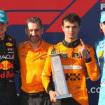 Norris era sesto nelle prime fasi della gara, con il compagno di squadra Oscar Piastri che inizialmente sembrava il favorito, ma una Safety Car ha giocato a favore dell’inglese che aveva allungato il suo primo stint. Norris è uscito davanti a tutti dal pitstop, con Verstappen secondo dopo essersi fermato in condizioni di gara normali e, nonostante un tentativo di attacco alla ripartenza, Norris è riuscito a mantenere la posizione e ad allungare. Una prestazione perfetta la sua e problemi di bilanciamento per l’olandese hanno permesso a Norris di entrare nel novero dei vincitori. Con lui sul podio Verstappen e Leclerc, sorridenti e felici del successo del 24enne, con cui si sono congratulati in modo sincero e spontaneo tutti i colleghi. Quarto posto per la Ferrari di Carlos Sainz, protagonista di un contatto con Piastri che ha costretto l’australiano a rientrare ai box per cambiare ala.