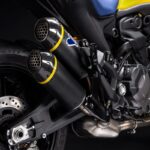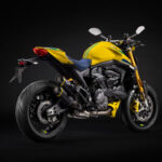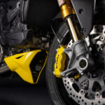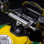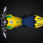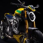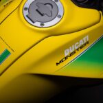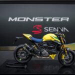 L’estetica del Monster Senna, oltre alla speciale colorazione, è impreziosita dai tag giallo/verde/blu sui cerchi neri, e dai dettagli in giallo riportati sulle pinze freno e sui silenziatori omologati Termignoni, in fibra di carbonio. Altri elementi distintivi di questo modello sono la sella speciale, il puntale paramotore in tinta e l’animazione dedicata del dashboard, visibile ad ogni key on. Ogni moto è infine resa unica da una placca sulla piastra di sterzo con riportato nome del modello e numero dell’esemplare, oltre che dalla consegna del certificato di autenticità e del telo coprimoto dedicato.