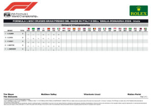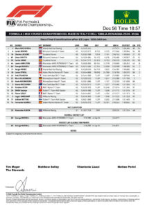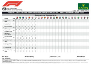 Dopo aver costruito un bel vantaggio nelle prime fasi di gara, il poleman Verstappen ha avuto una gara tranquilla finché Norris non ha iniziato ad avvicinarsi pericolosamente negli ultimi giri, ma ha dovuto “accontentarsi” di un’ottima seconda posizione, a soli 0.725s alla bandiera a scacchi. Sul terzo gradino del podio, nella gara di casa della Ferrari e per la gioia dei tantissimi tifosi, Charles Leclerc, con la seconda McLaren di Oscar Piastri quarta. Carlos Sainz porta altri punti importanti alla Scuderia con il quinto posto finale, davanti alle Mercedes di Lewis Hamilton e George Russell, che ha fatto un secondo pitstop a sorpresa montando le medie a fine GP, con cui ha fatto il giro veloce portando a casa un punto extra.