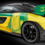 Le vernici selezionate per la livrea Senna Sempre specchiano i colori della bandiera brasiliana, con toni luminosi di giallo, verde e blu riuniti grazie ad una tecnica di lavaggio recentemente sviluppata da MSO. Questa tecnica consente alle vernici di fondersi tra loro senza creare colori aggiuntivi, evocando al contempo la velocità e il movimento di una bandiera sventolante. Questo effetto viene applicato anche allo stemma McLaren sul muso della vettura. Le linee di demarcazione verdi e bianche che corrono attorno alla parte centrale dell’auto e le prese d’aria alla base del parabrezza si ispirano direttamente ai dettagli dell’iconico casco da gara di Ayrton Senna. Sui pannelli che coprono le grandi prese d’aria sulla fiancata della vettura, i tecnici della MSO hanno creato due distinte rappresentazioni di Ayrton Senna. Applicato a mano e con un’eccezionale attenzione ai dettagli, l’effetto matrice di punti prende vita da lontano, raffigurandolo in pista e fuori.