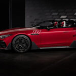 Il minuzioso lavoro del team di progettazione si nota anche nella pannellatura dei brancardi laterali con flics aerodinamici. Le spalle muscolose sopra le ruote posteriori a carreggiata larga si fondono con l’elegante cofano del bagagliaio e la grembialatura posteriore che enfatizza la larghezza.